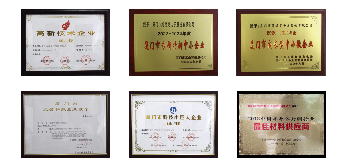 厦门市海德龙电子股份有限公司成立于1997年,在厦门市翔安火炬高新区拥有八千多平方米的生产基地,是目前国内比较大型的集研发、生产、销售为一体专业生产电子封装为核心、拥有自主知识产权及进出口权的高新技术企业。公司自成立以来,现已在厦门、成都等地拥有多家全资子公司。